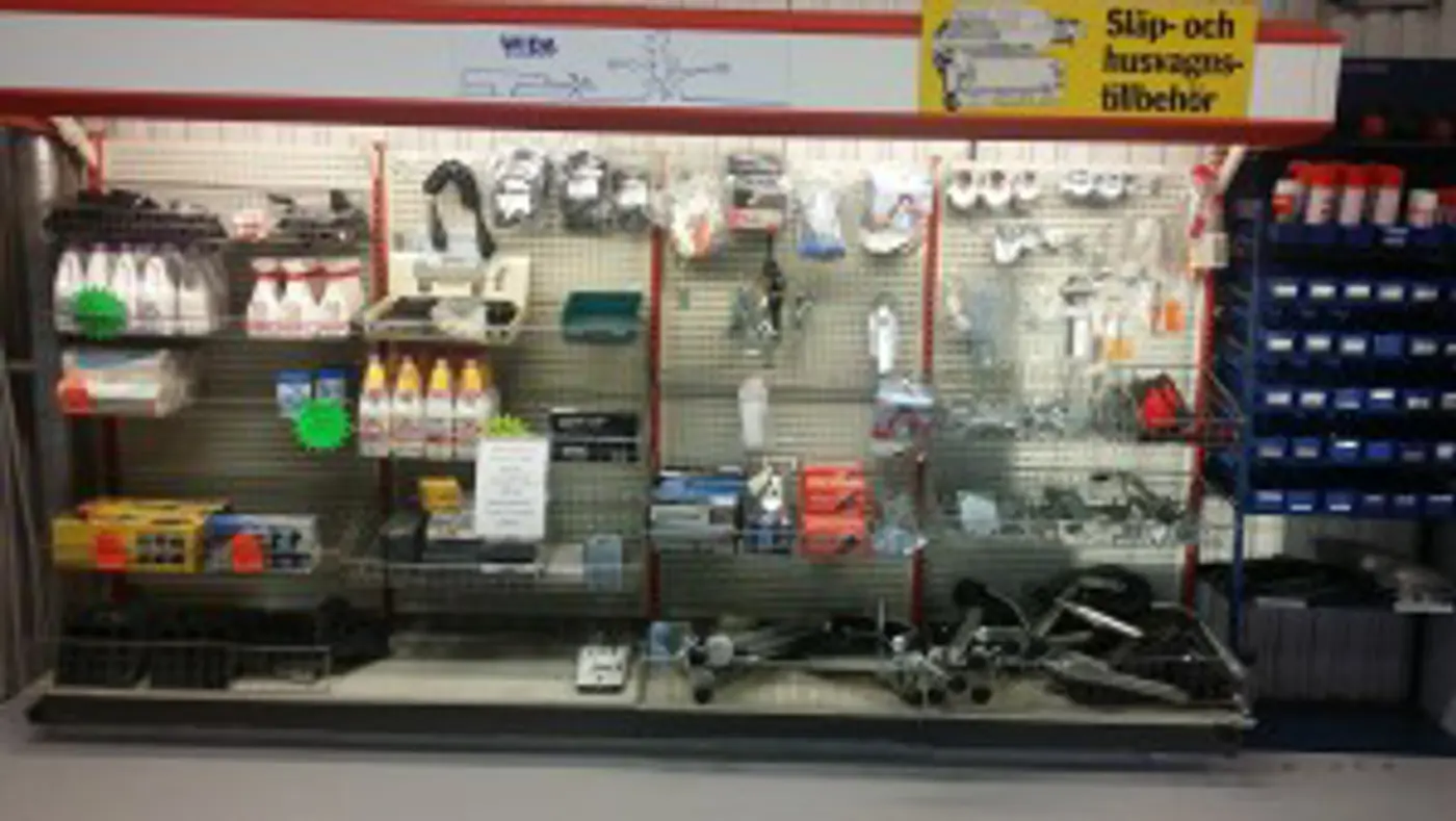 Till husvagnar finns delar till axlar, bromsar och påskjut, men inte till ”hotellavdelningen”. Tillbehör finns också.